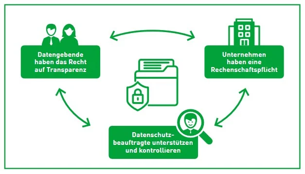 In Bezug auf den Datenschutz ist Klüh in ein Dreiecksverhältnis zwischen den Datengebenden und Datenschutzbeauftragten eingebettet, das wechselseitig geprägt ist von Interessen, Rechten und Pflichten.