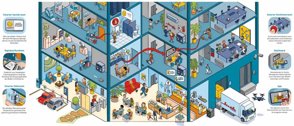 Hier können Kunden, Partner und Interessierte unsere digitalen Lösungen live erleben und testen – von smarten Gebäudesteuerungen über Sensorik, IoT und KI-basierte Anwendungen bis hin zu nachhaltigen Servicekonzepten für die Fachbereiche Cleaning, Catering und Security.