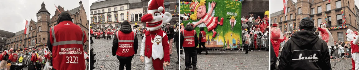 Allein an Altweiber sicherte ein knapp 130-köpfiges Team von Klüh Security quer in der Stadt verteilt jecke Veranstaltungen ab. Besonderer Schwerpunkt lag an diesem Tag wie jedes Jahr beim traditionellen Möhneball in den Rheinterrassen sowie am Rathaus. Dort übernahmen die Kolleginnen und Kollegen die Absicherung der Veranstaltungen, unter anderem Zutrittskontrollen oder die Absicherung der Flucht- und Rettungswege.